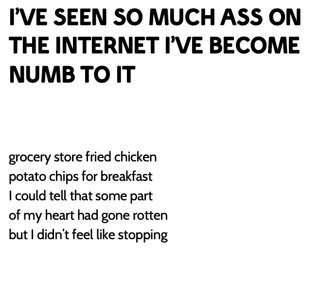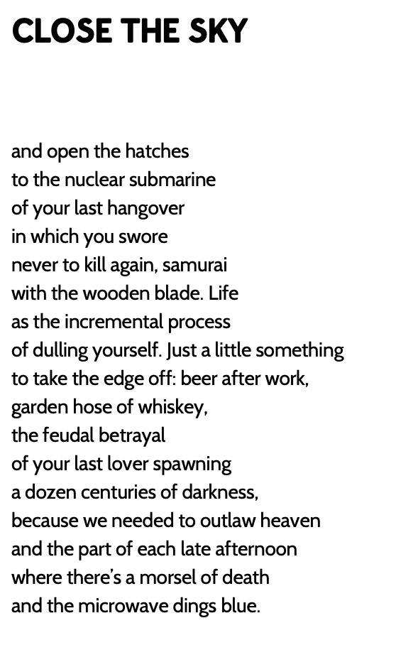 Death Egg is a collection of ~60 poems about unemployment, love, jellyfish, despair, and apocalypses. Each poem is a bleak, dense rumination on contemporary American life, creating both powerful levity and despair with its exploration of the banal through dramatic, video game-like conceits, honing in on the uniquely modern insanity of knowing everything and nothing all at once. Cinematically tongue-in-cheek yet deeply earnest, unique yet relatable, this is the final egg: the death egg, fortress of loss and takeout receipts.